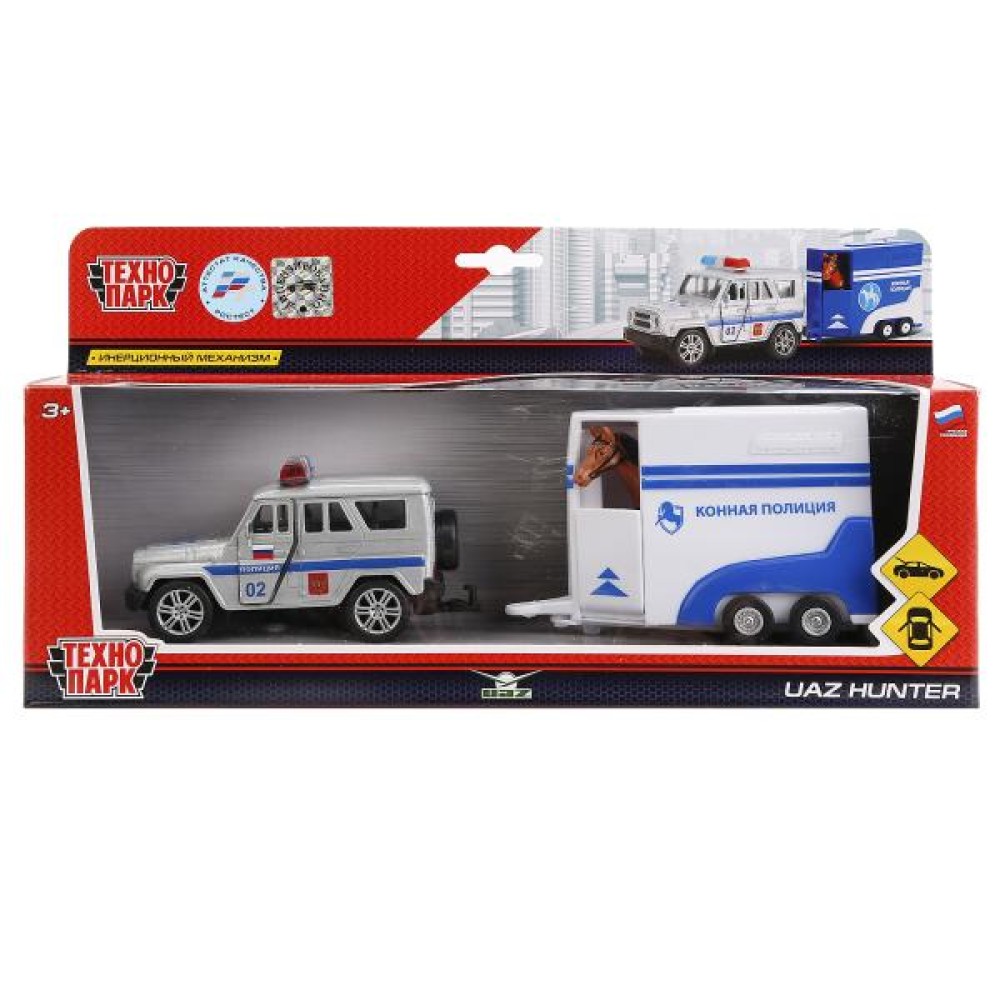 Технопарк. "УАЗ HUNTER" Набор "Конная полиция" метал.инерц. 11см,с фург. и лош-й арт.SB-16-68+HT-WB