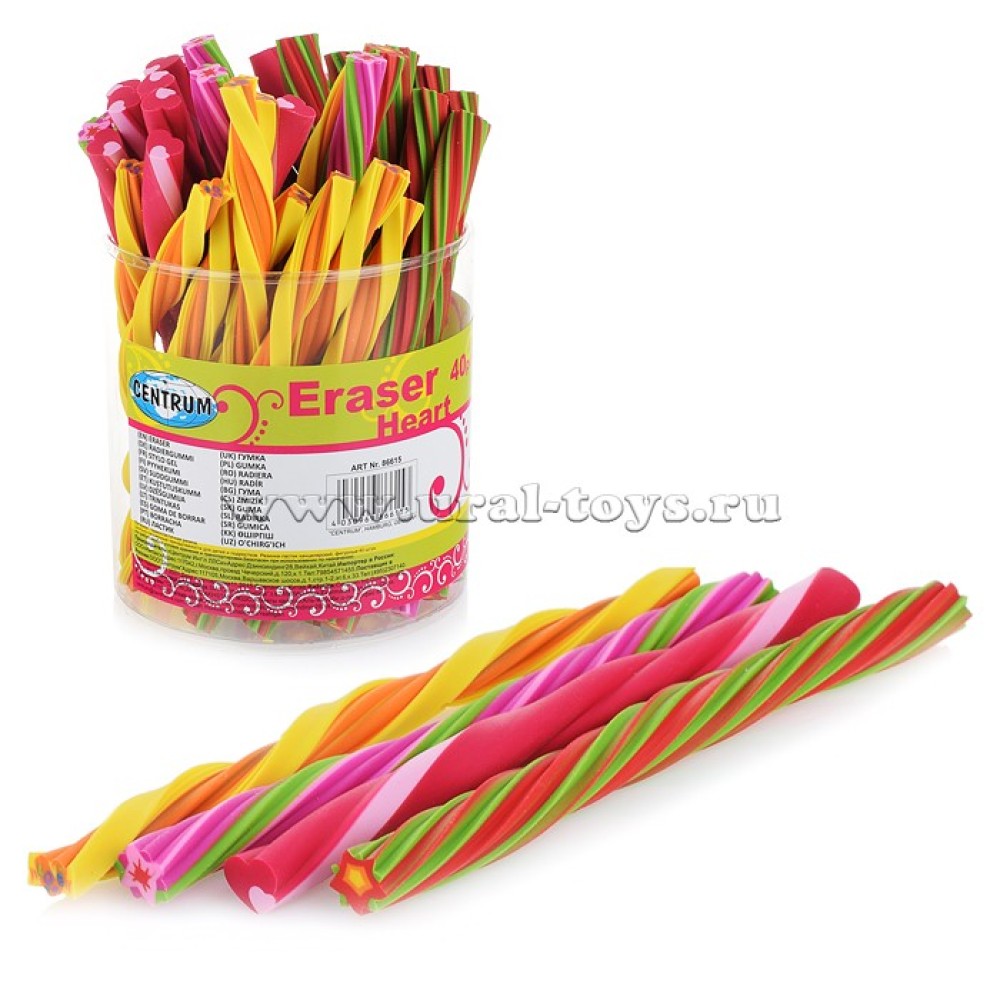 Центрум. 86615 Ластик спираль из синт. каучука "Цветы и Сердца" в тубусе 160*10мм