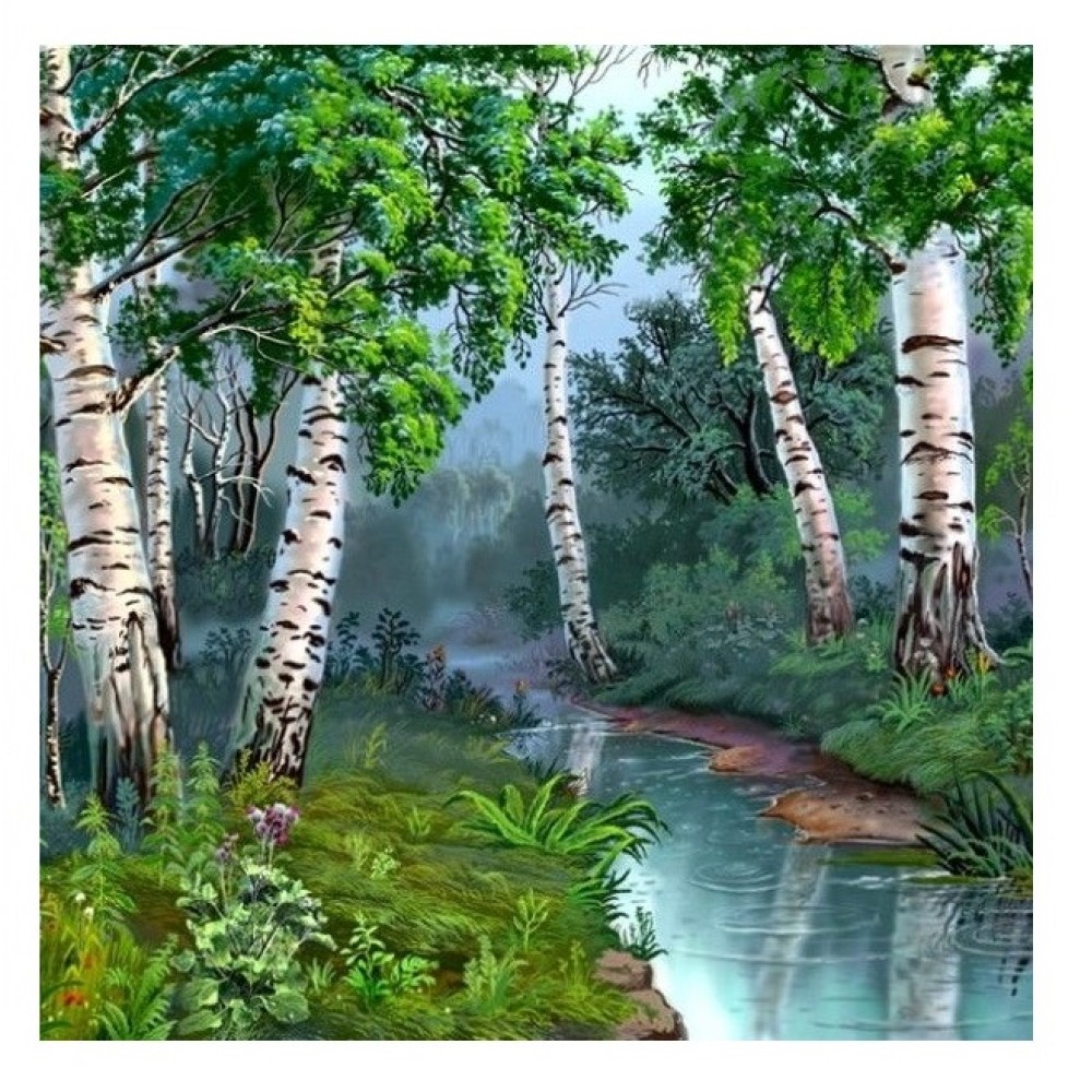 Центрум. Алмазная мозаика 40х50 см арт.87144 "Березовая роща" без подрамника, частичная выкладка,