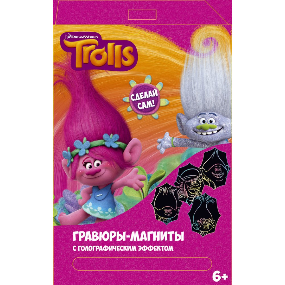 Центрум. Тролли 87527 Гравюра-магниты основа с нанесенным контуром с металлическим эффектом
