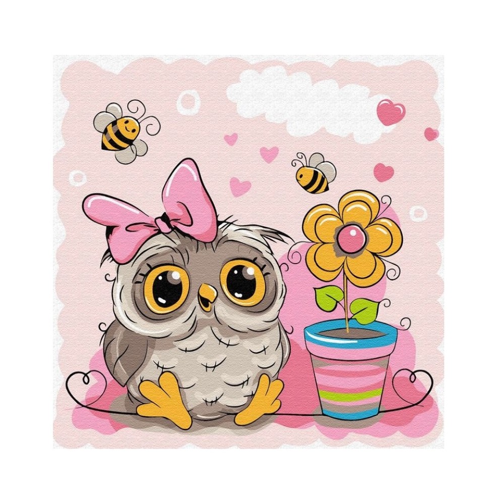 Molly. Картина по номерам KH0847 "Совёнок с цветком" (20Х20) 12 цветов /60