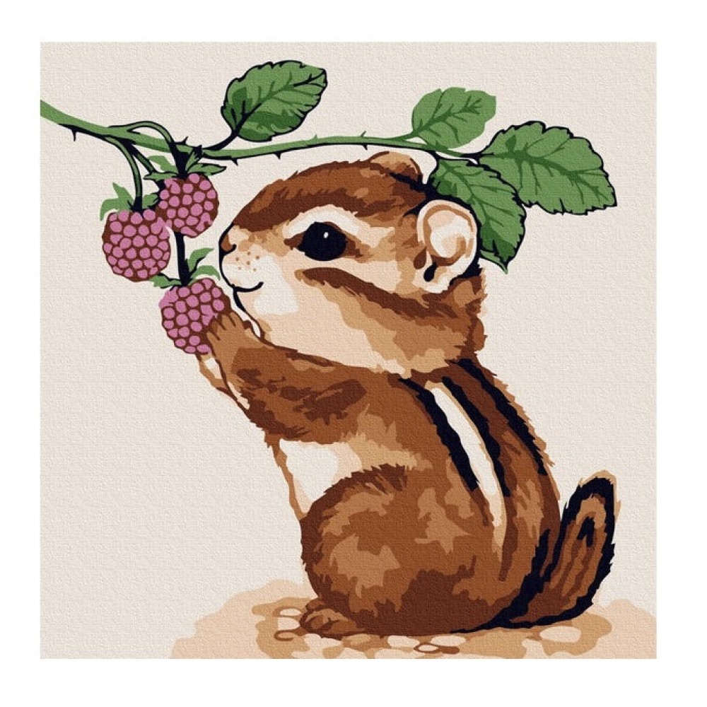 Molly. Картина по номерам KH0909 "Бурундучок с ежевикой" (20Х20) 10 цветов /60