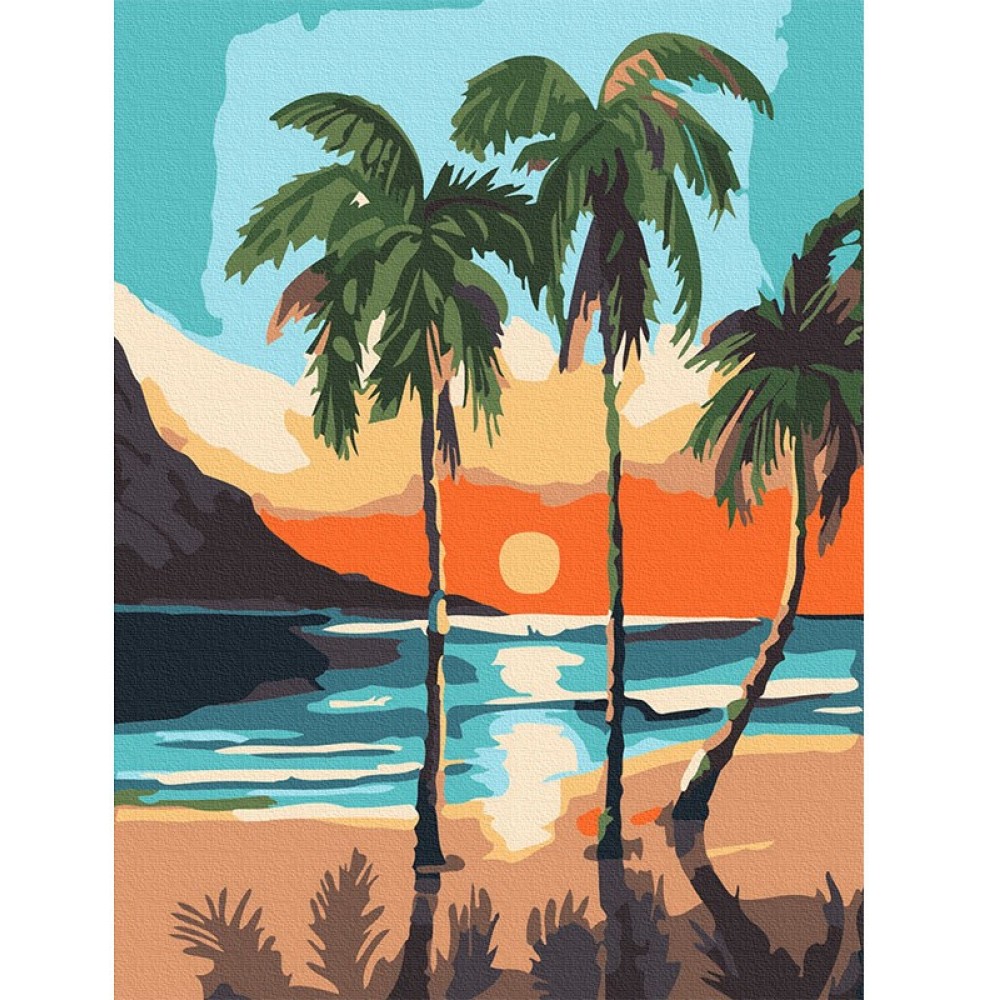 Molly. Картина по номерам KH0986 "Пальмы на закате" (15х20) 14 цветов