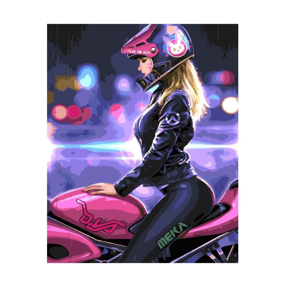 Molly. Картина по номерам KHM0033 "Девушка на мотоцикле" (30Х30) 24 цвета /23