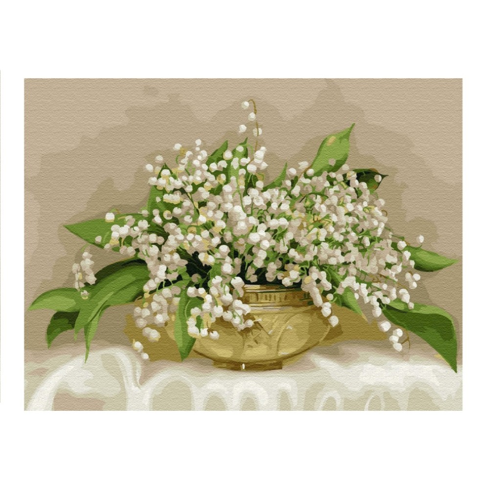Molly. Картина по номерам с цветной сх. KK0657 "Ландыши в хрустальной вазочке" Бузин (30х40) 20 цв