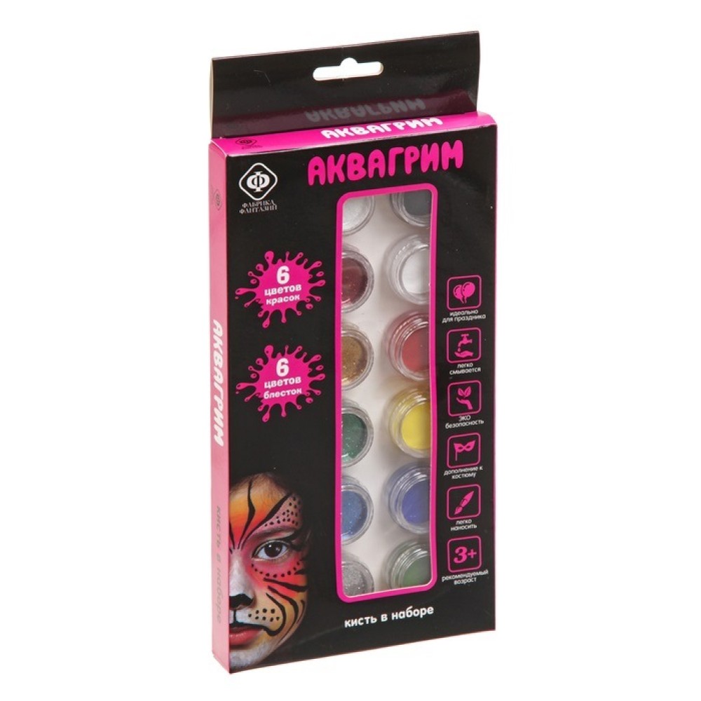 Фабрика Фантазий. 56918 Набор красок аквагрим, 6 цветов красок, 6 цветов блесток