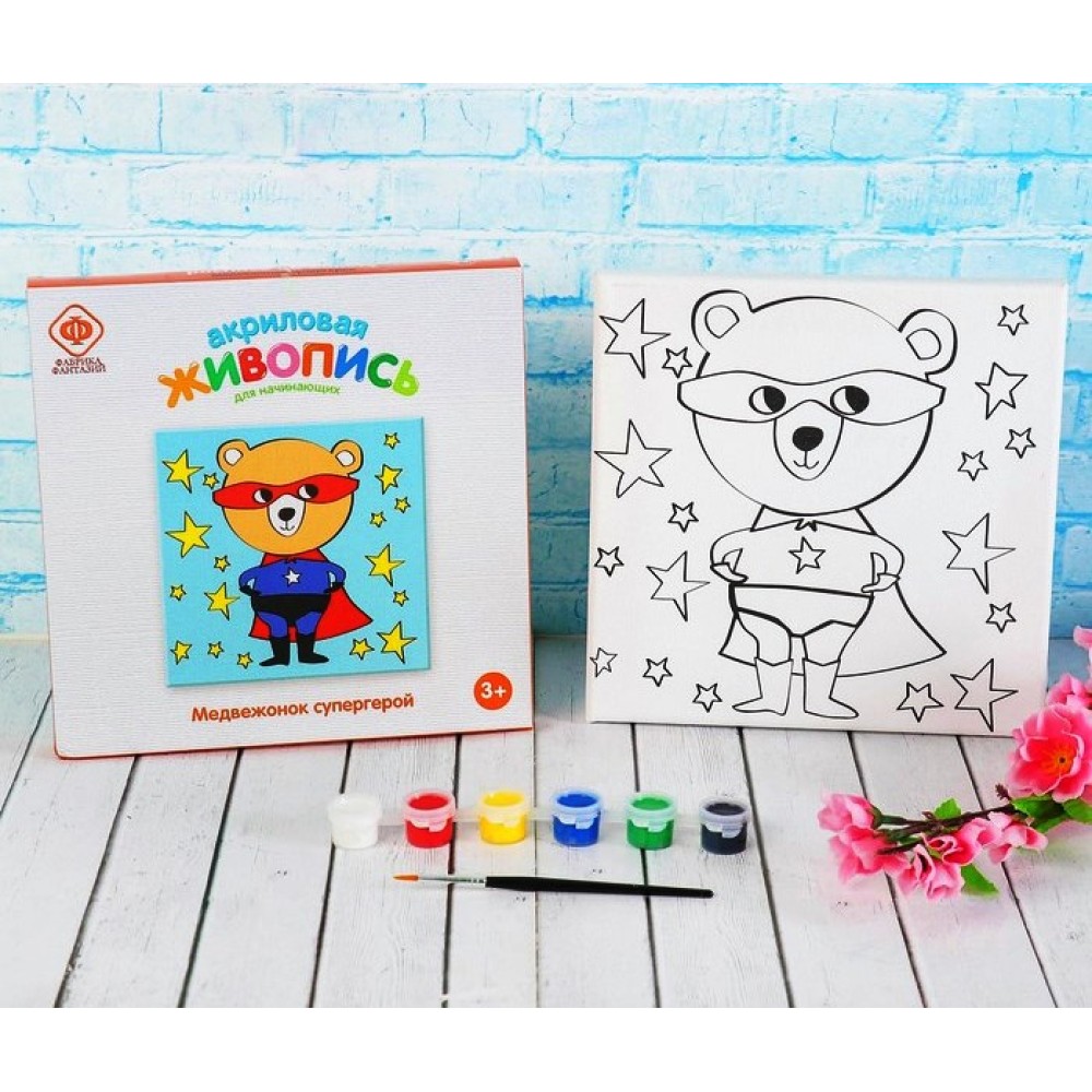 Фабрика Фантазий. 59341 Роспись по холсту "Медвежонок супергерой" 20х20 см