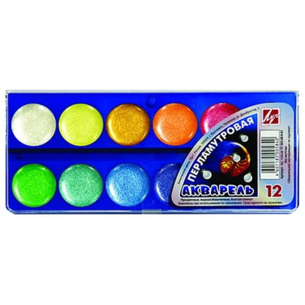 Луч. Акварель перламутровая 12 цв. без кисти 16С 1105-08 /48