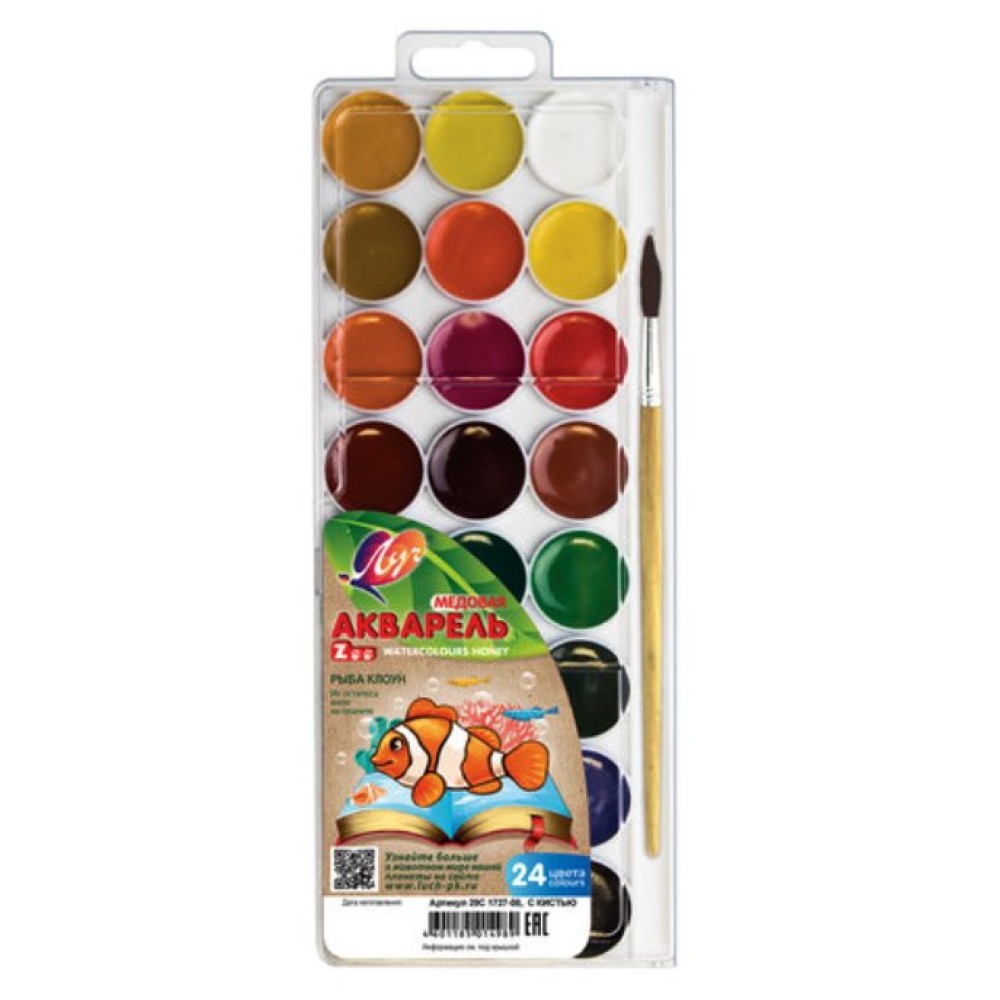 Луч. Акварель "Zоо" 24 цв. с кистью пласт. упак. (европодвес) арт.29С 1727-08 /30*