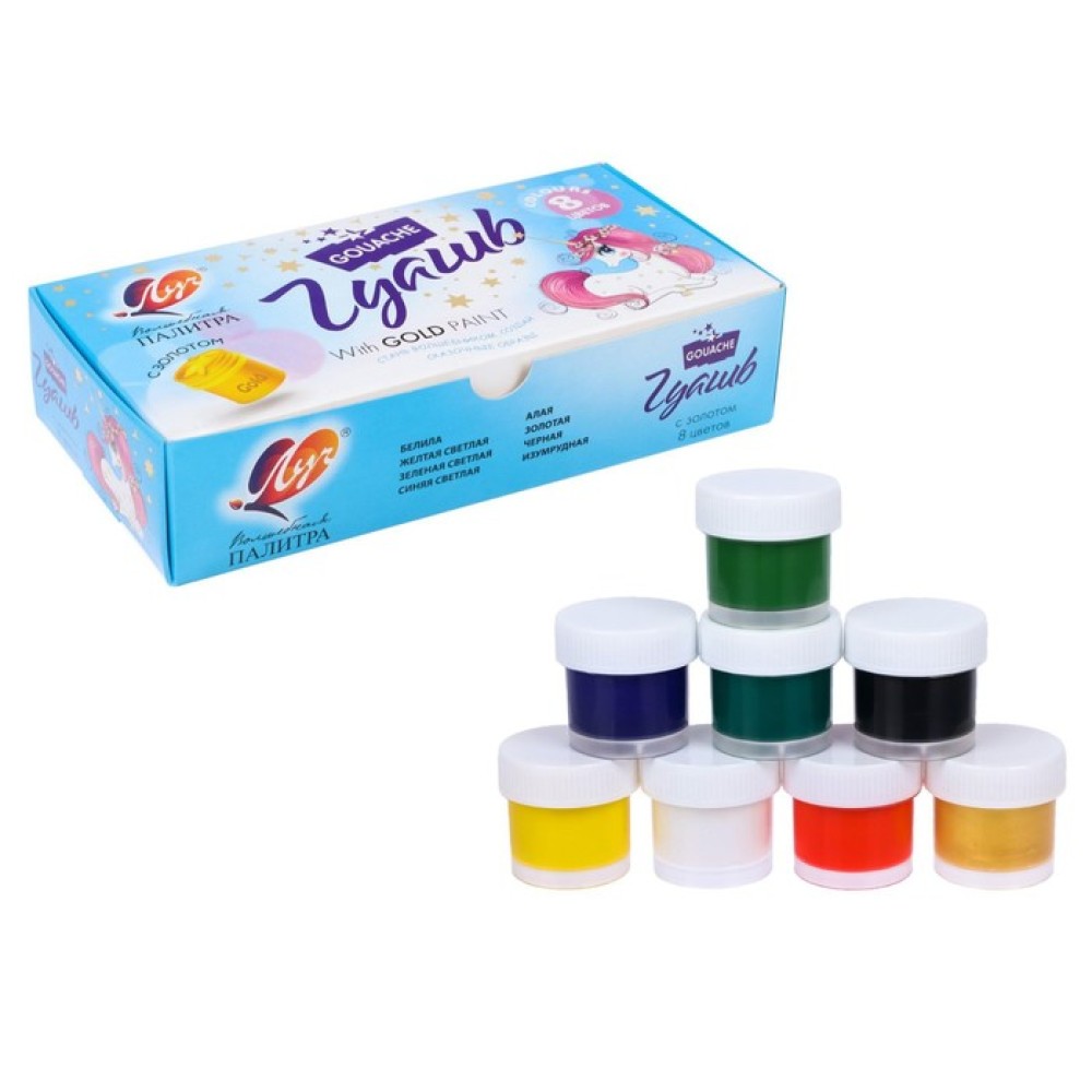 Луч. Гуашь "Волшебная палитра" 8 цв. с золотом (15 мл) арт.30С 1931-08