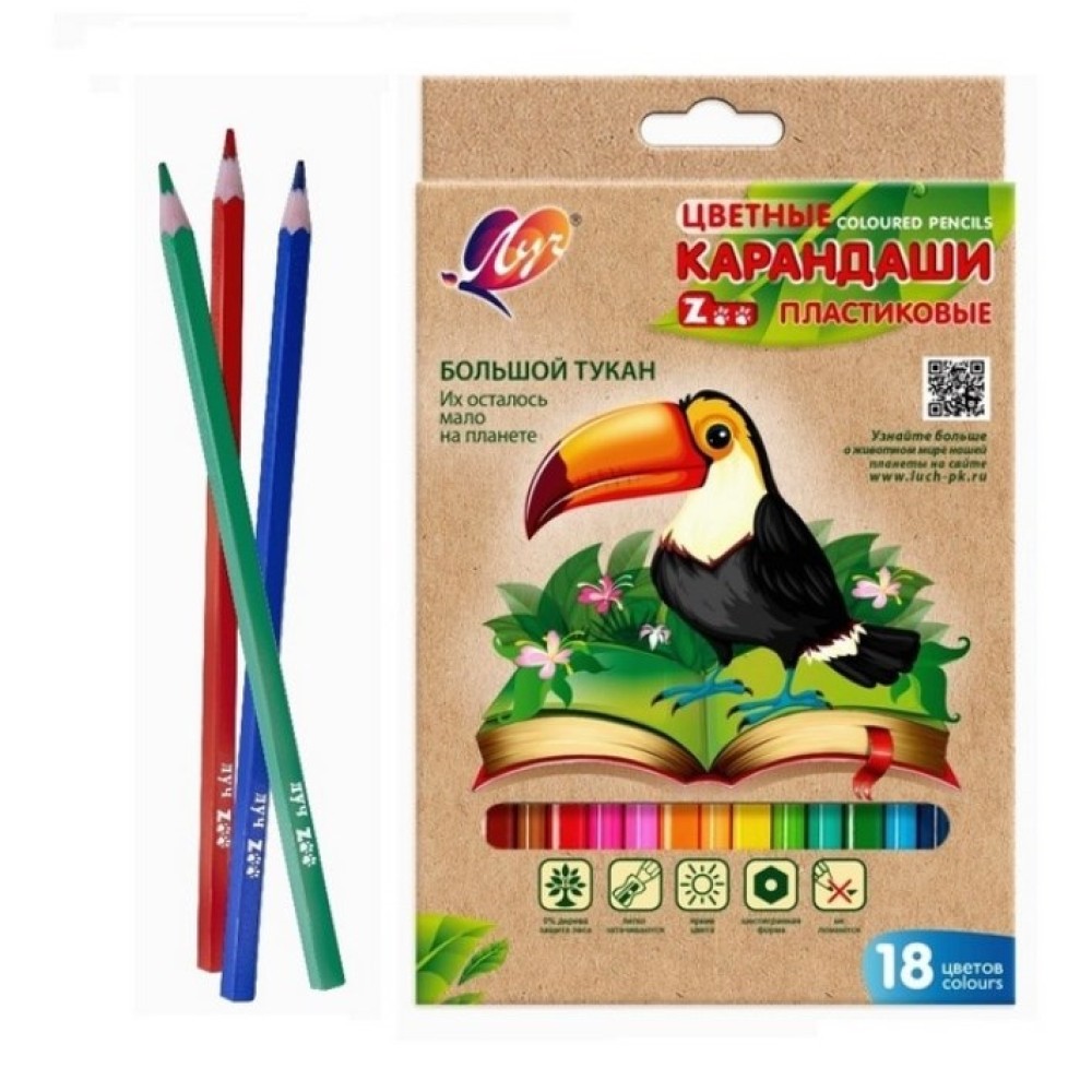 Луч. Карандаши цветные шестигранные "Zоо" 18 цв. (пластиковые) арт.29С 1741-08 /24