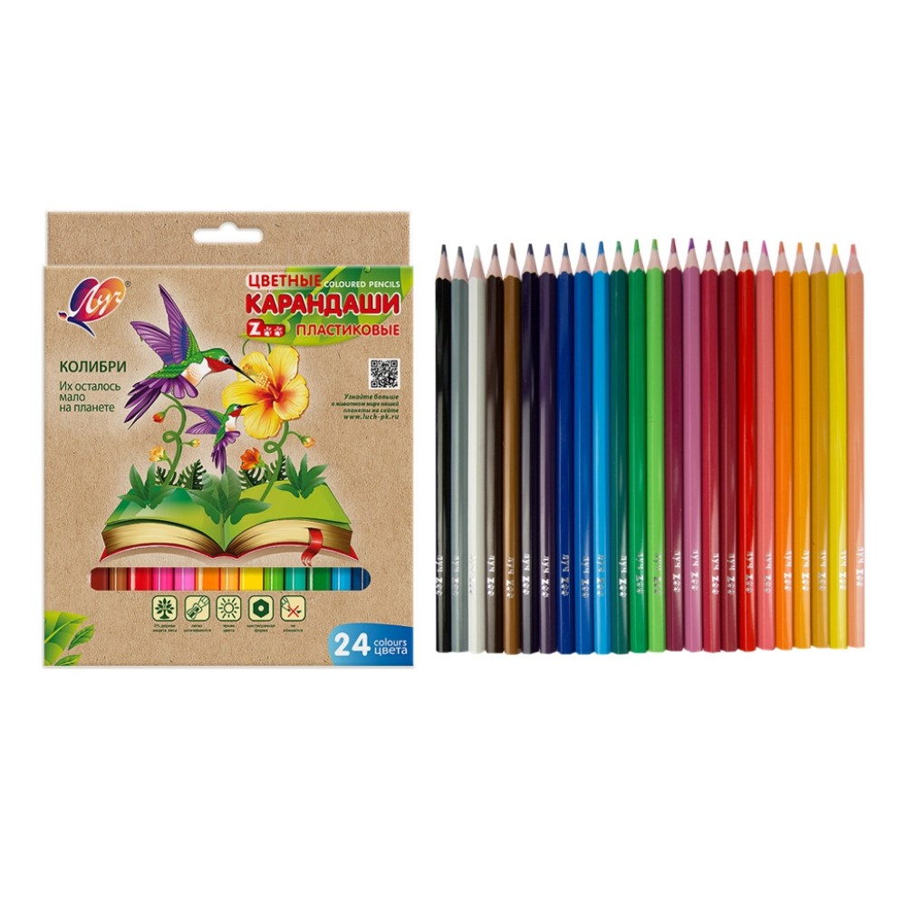 Луч. Карандаши цветные шестигранные "Zoo" 24 цв. (пластиковые) арт.29С 1742-08 /24