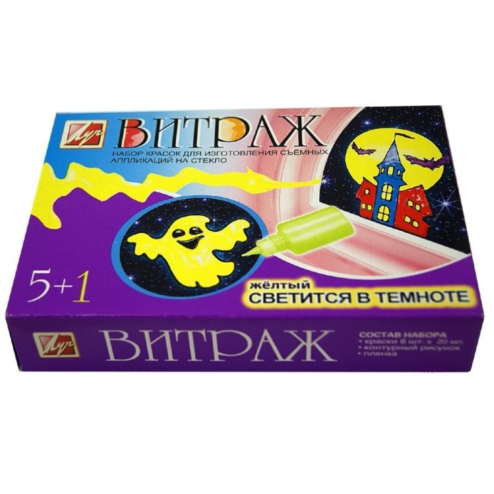 Луч. Краски по стеклу "Витраж" 5 цв.+1 светящийся арт.23С 1447-08 /12 (боится холода)