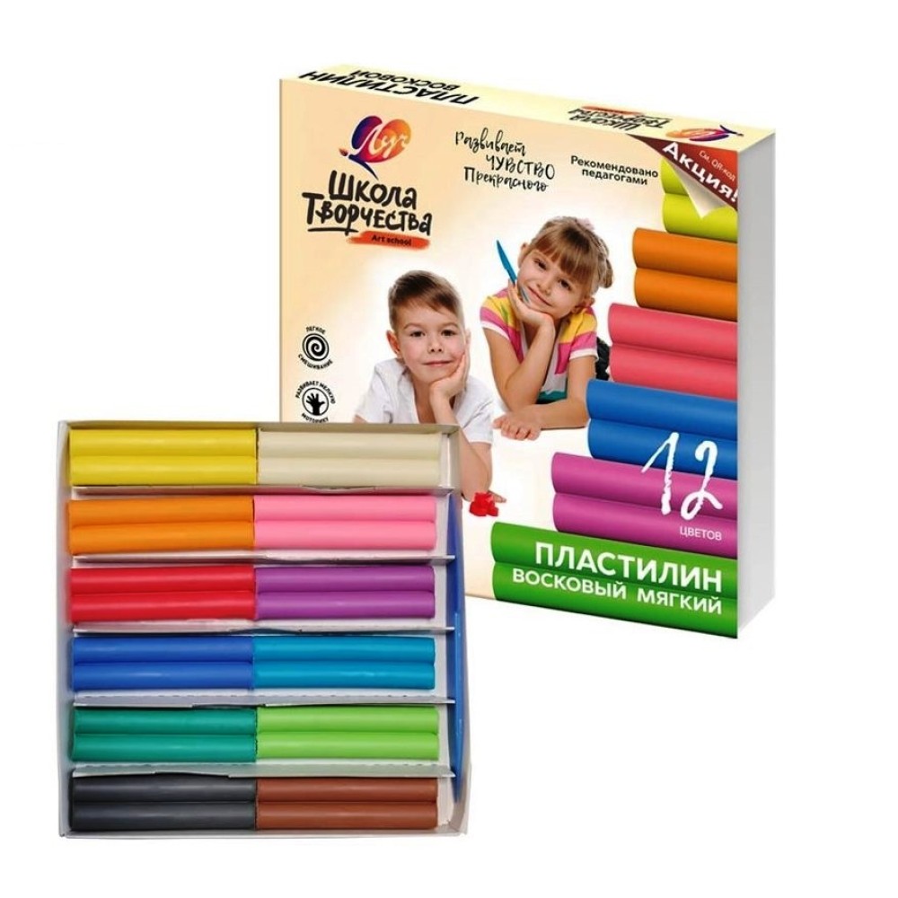 Луч. Пластилин мягкий восковой "Школа творчества" 12 цветов арт.29С 1771-08 /20