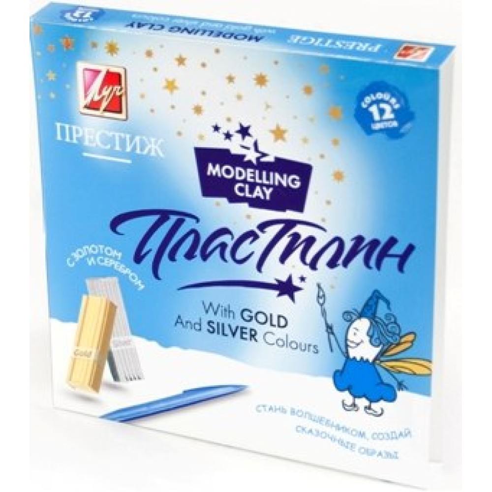 Луч. Пластилин "Престиж" 12 цв. с золотом и серебром арт.18С 1225-08 /20