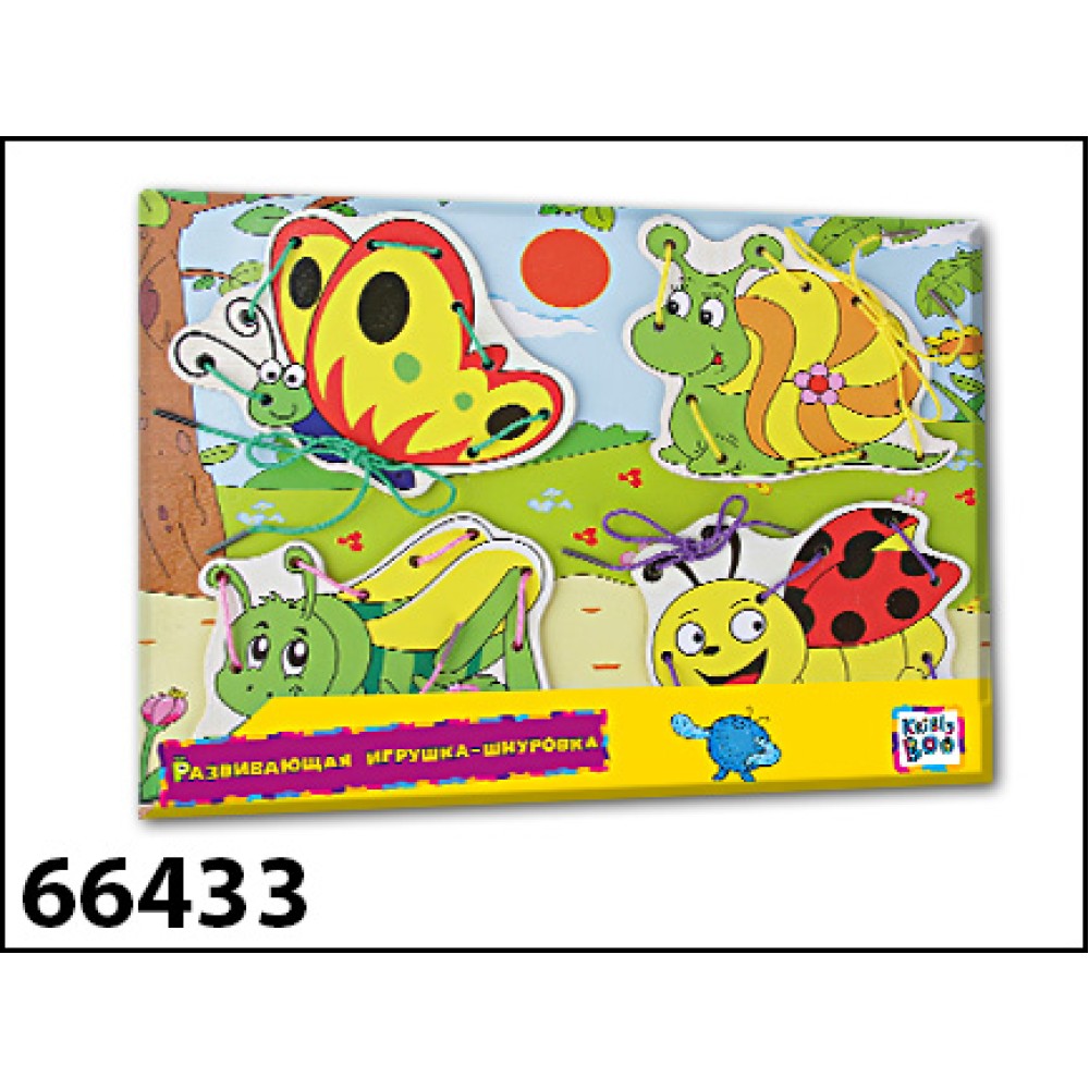 Kribly Boo. Развивающая игрушка-шнуровка "Жучки" арт.66433 (дерево)