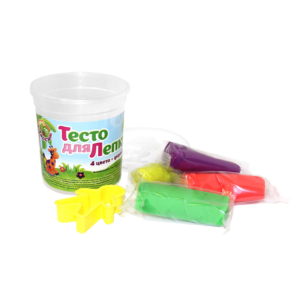 Развивашки.П116 Тесто для лепки 4 цвета+формочка-каттер в банке /40