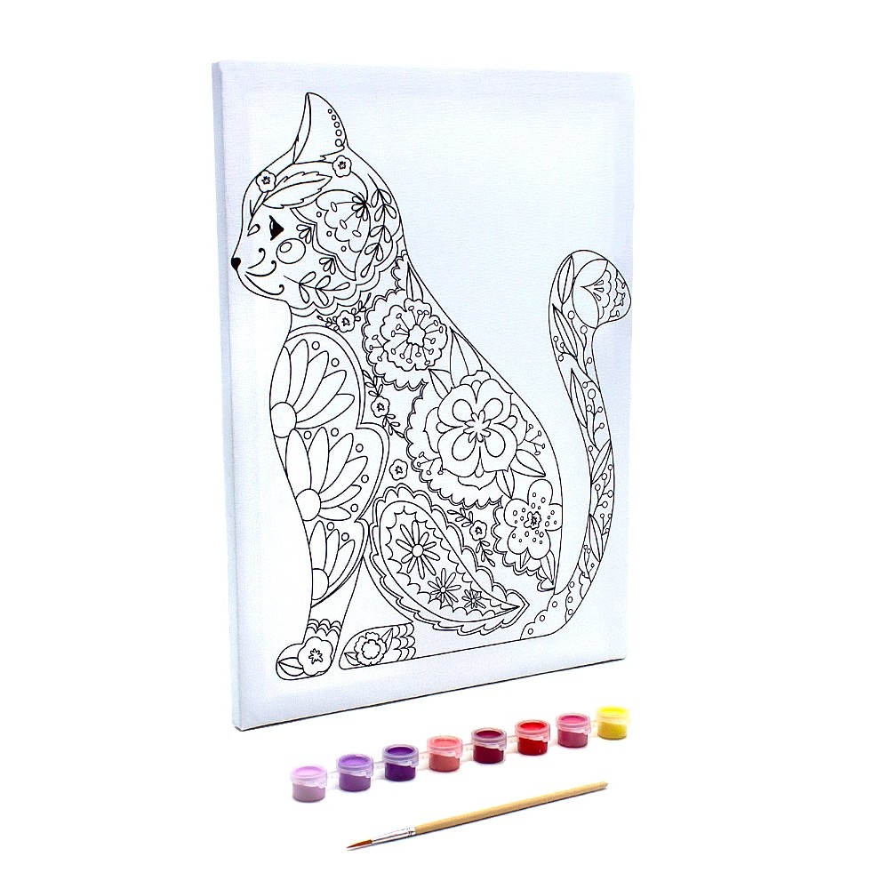 Развивашки.Р3111 Раскраска на холсте "Цветочная кошка" 40х30