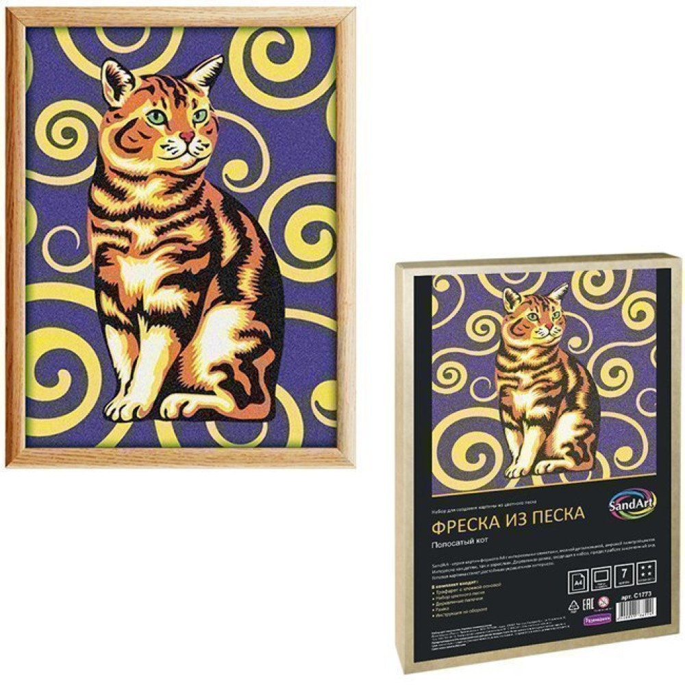 Развивашки.С1773 Фреска из цветного песка "Полосатый кот"