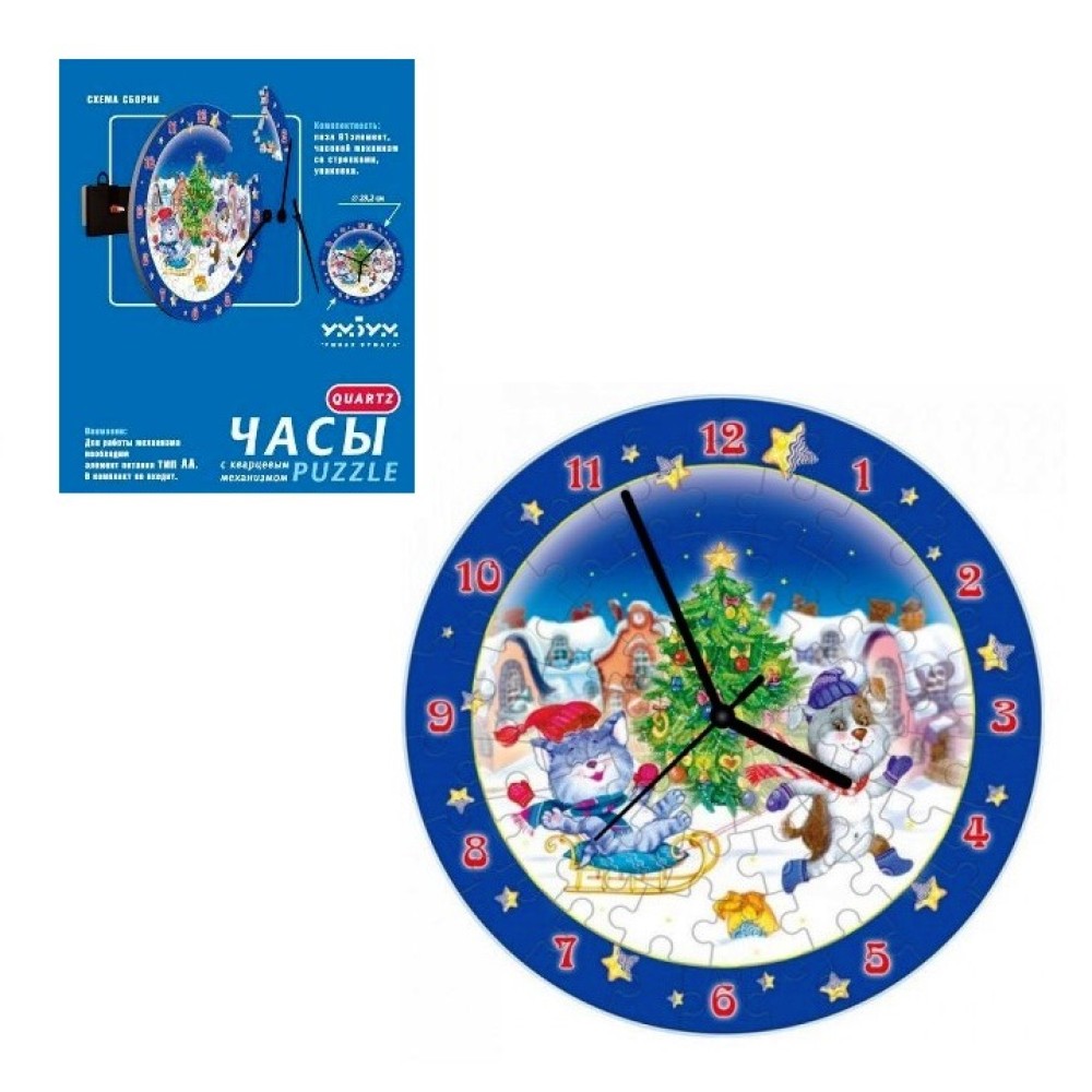 УмБум126-09 Часы-пазл "Новогодние забавы" (с часовым механизмом)
