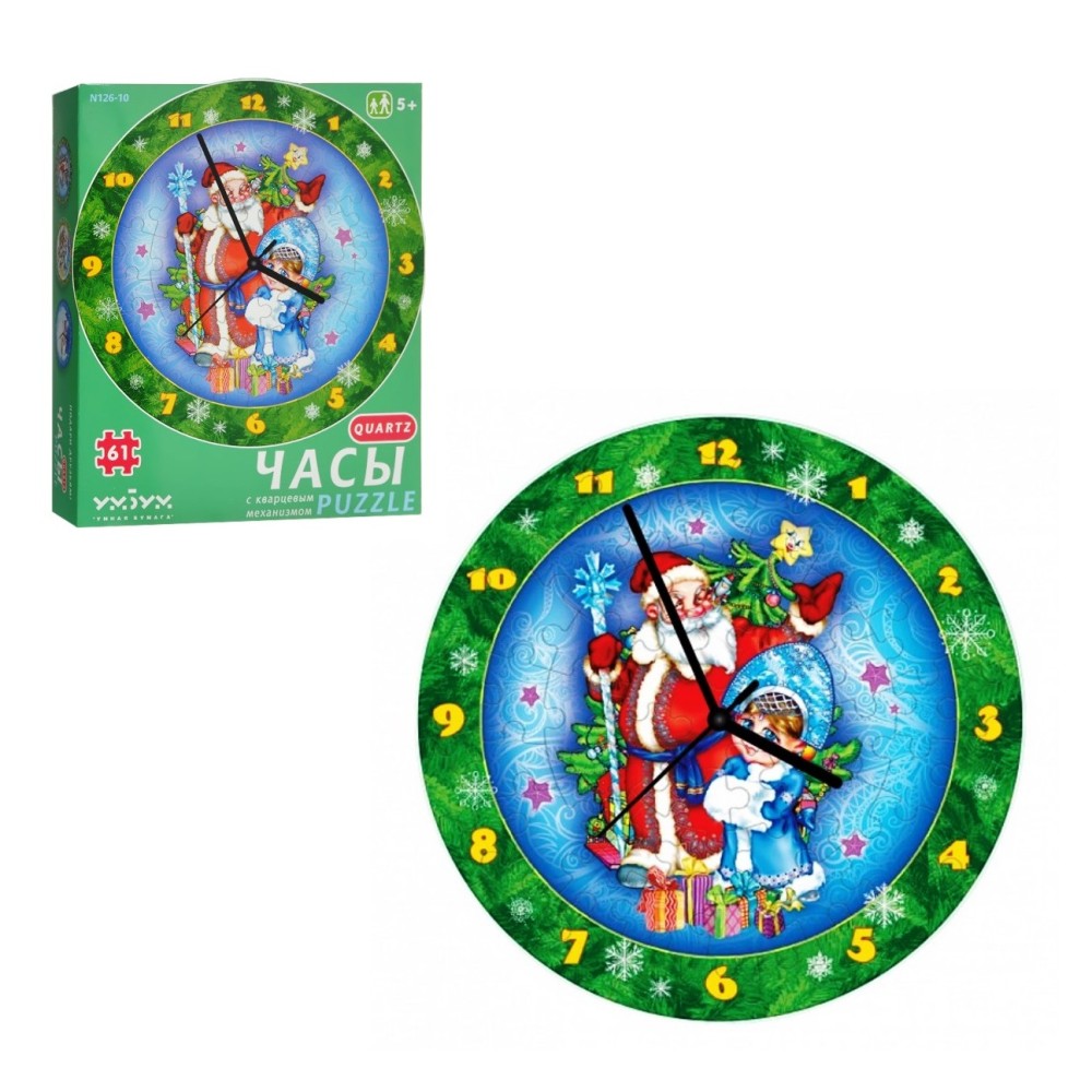 УмБум126-10 Часы пазл "Дед мороз и снегурочка" (с часовым мех.)