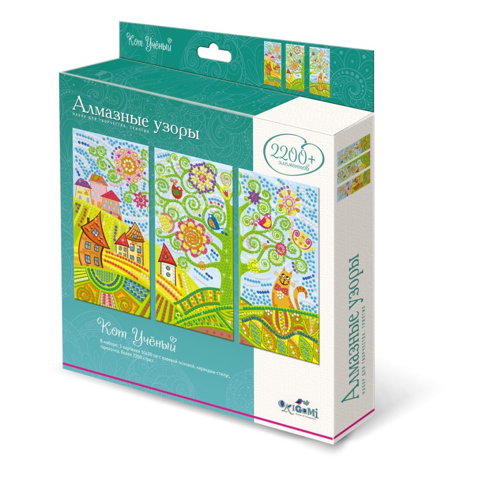 Origami. Алмазные узоры "Кот ученый" 3 картинки 10*20см арт.04239