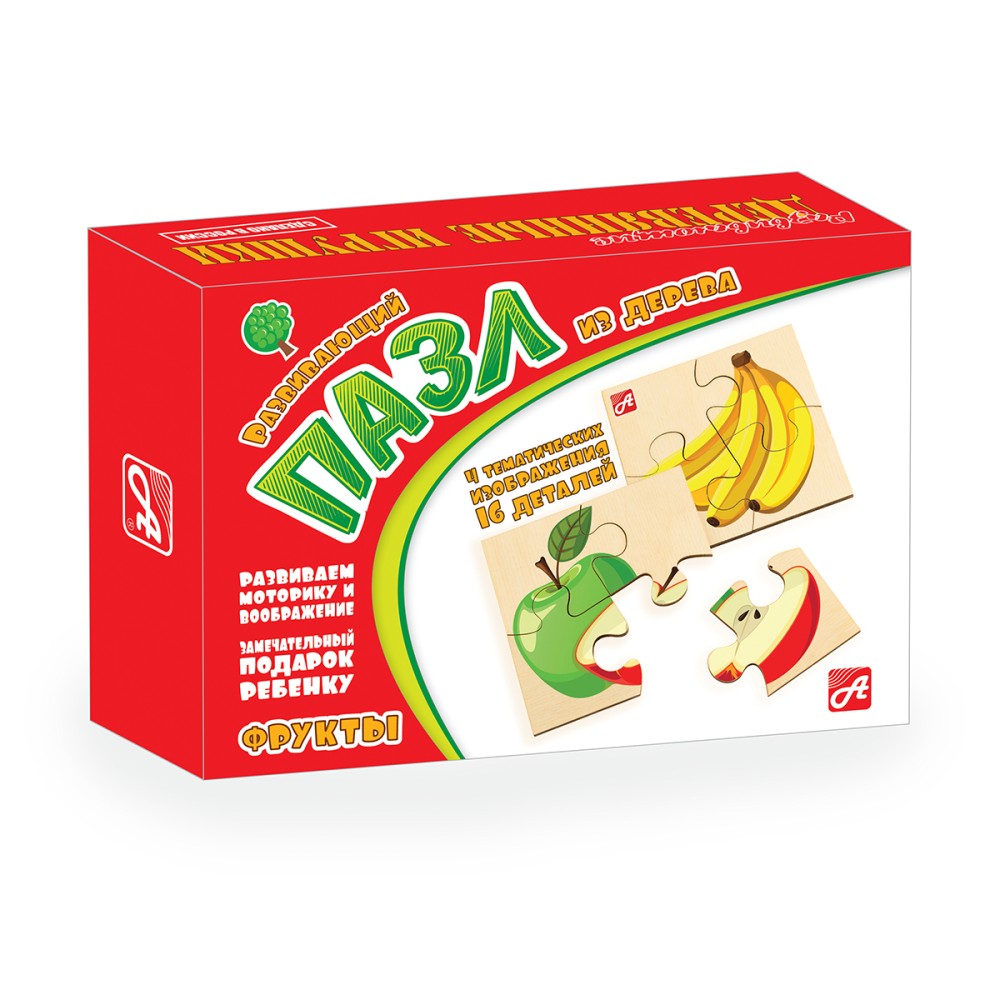 Анданте. Д541а Деревянный пазл "Фрукты" (4 пазла в комплекте)