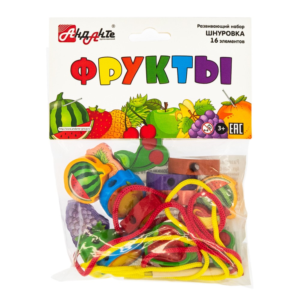 Анданте. RDI-D004a Развивающий набор шнуровка "Фрукты" 16 эл-в