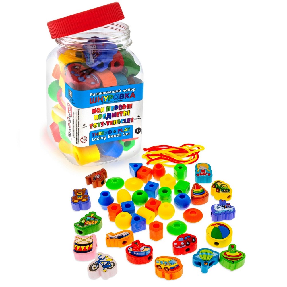Анданте. RDI-D108a Развивающий набор бусы-шнуровка "Мои первые предметы" 40 эл