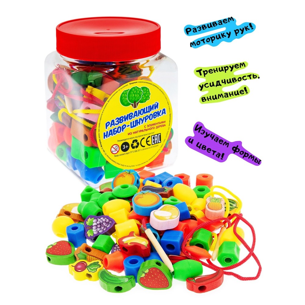Анданте. RDI-D111a Развивающий набор бусы-шнуровка "Овощи и Фрукты" 65 эл-в