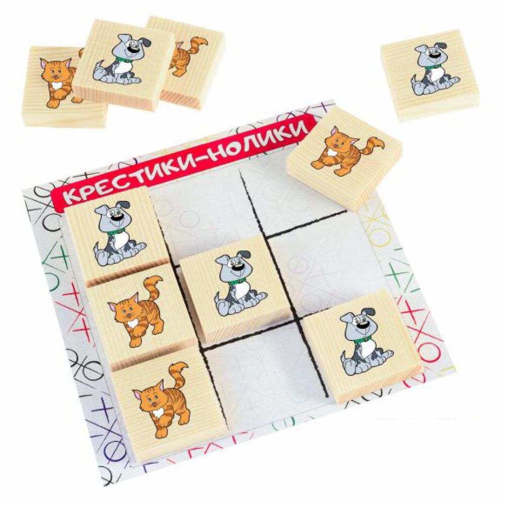 Анданте. RDI-D519a Крестики-нолики КОШКИ против СОБАК. Разв. игра (10 фишек из нат.дер.)