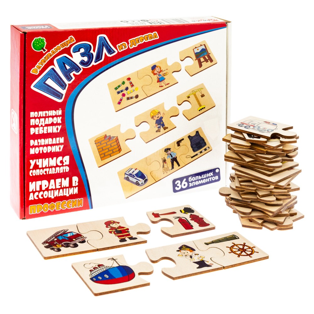 Анданте. RDI-D588a Профессии. Играем в ассоциации. Развивающий пазл из дерева. 36 больших эл