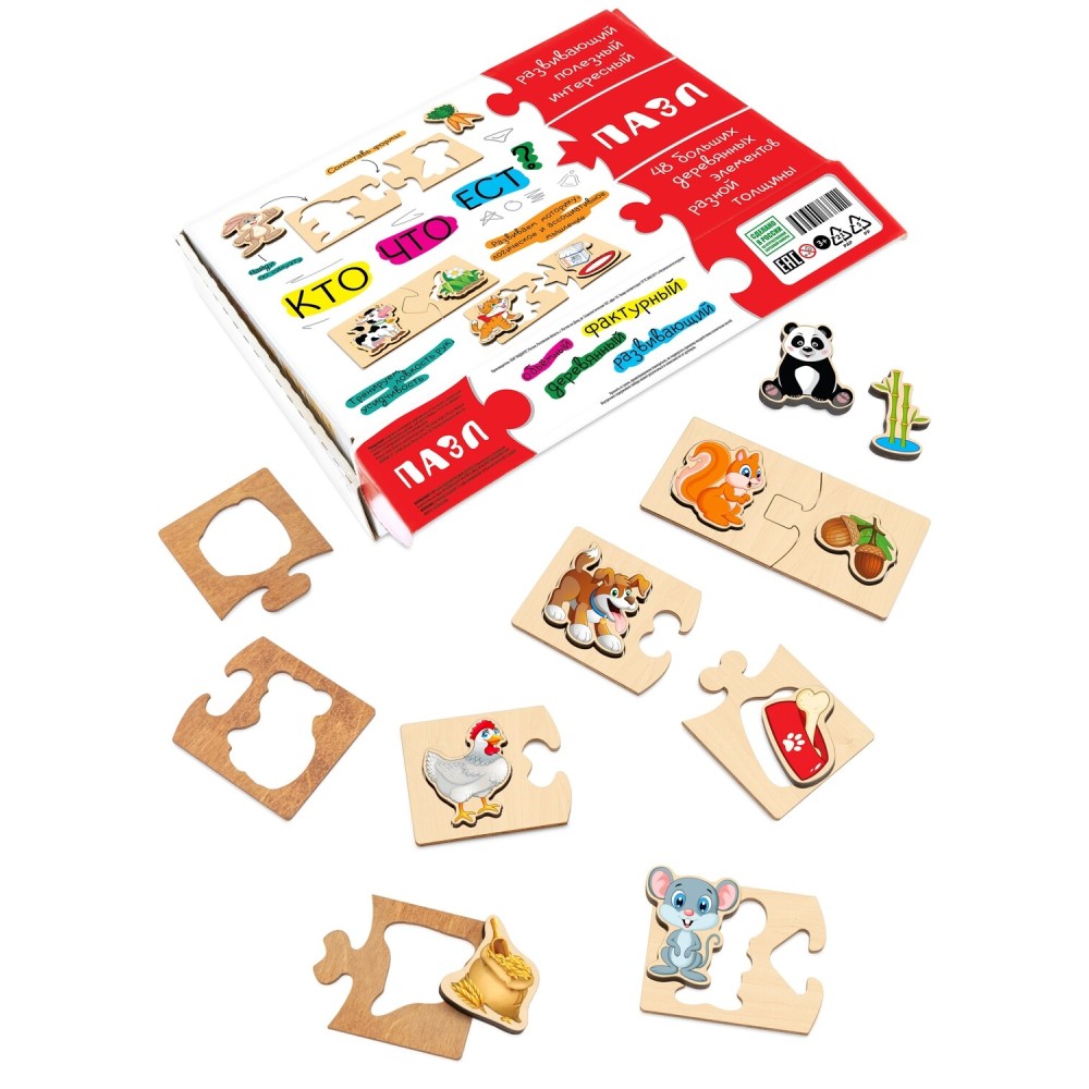 Анданте. RDI-D593a Фактурный деревянный пазл "Находим силуэты. Кто что ест?" 48 эл.