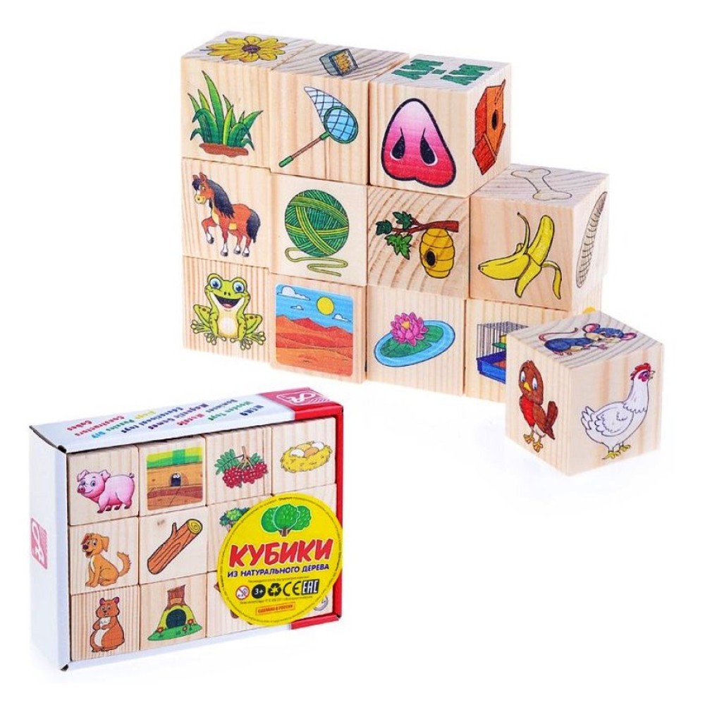 Анданте. RDI-D655a Ассоциации на кубиках №2. 12 кубиков (жив. фермы, овощи, морские жив-е, насеком)