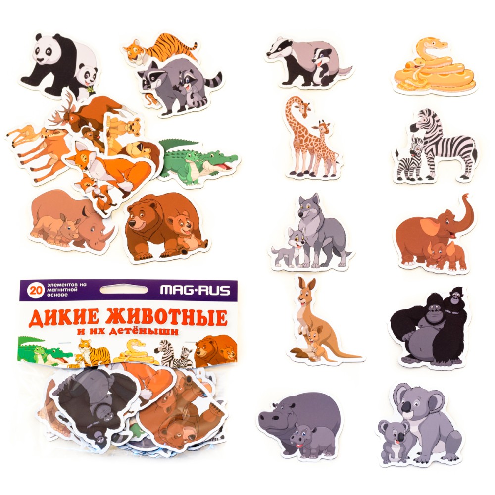 Mag-Rus. NF1008 Набор "Дикие животные и их детеныши" картон, магнит (20 эл-в) /75