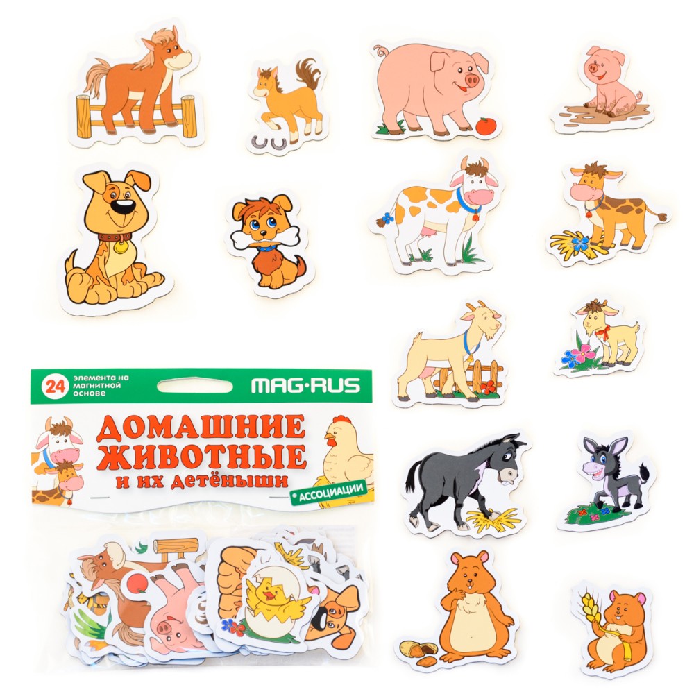 Mag-Rus. NF1013 Набор "Домашние животные и их детеныши" Картон, магнит (24 эл-та) /75