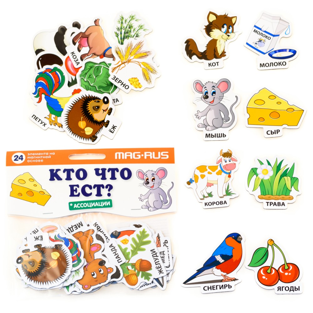 Mag-Rus. NF1015 Набор "Кто что ест?" Картон, магнит (24 эл-та) /75