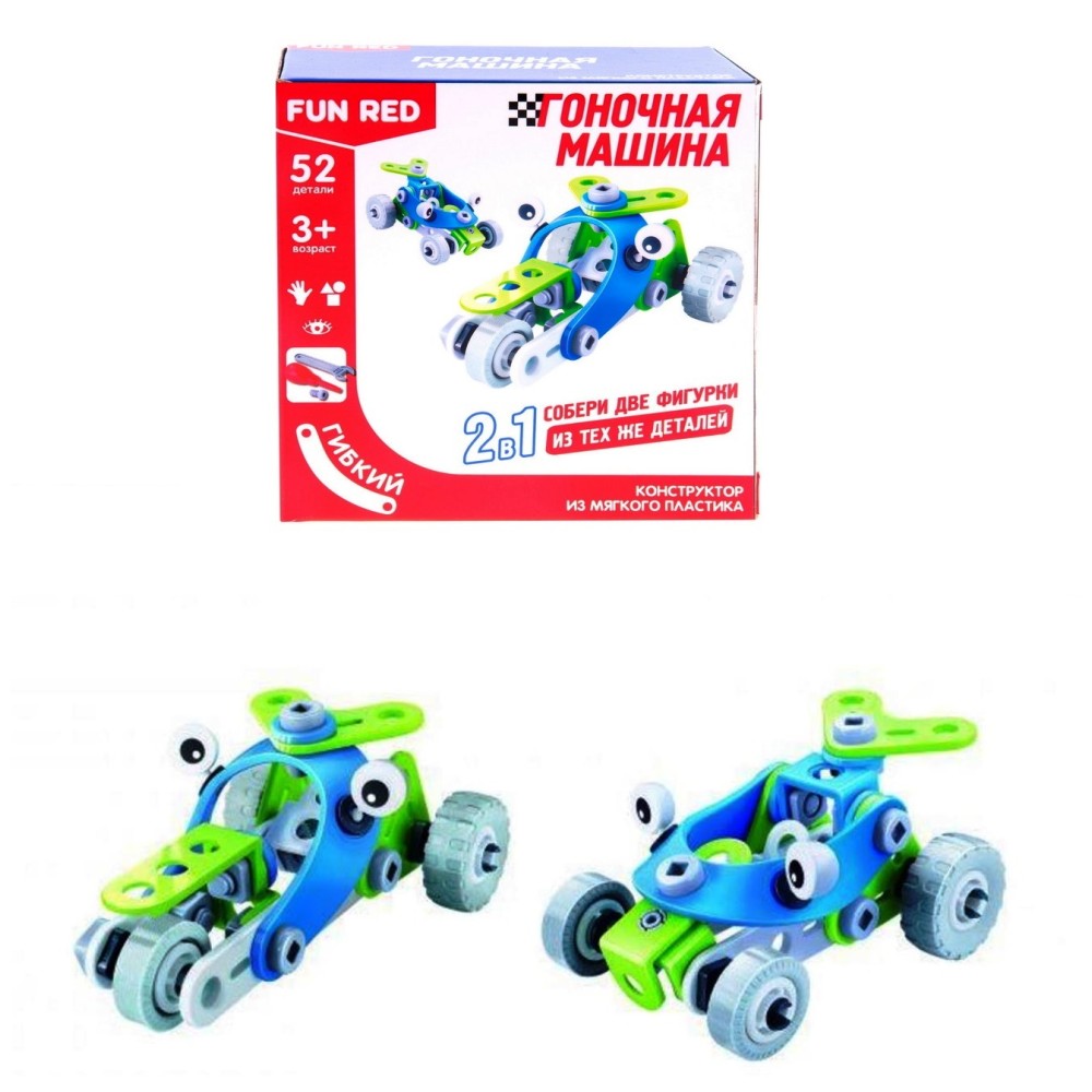 Gulliver.Гибкий конструктор Fun Red. Набор 2в1 "Гоночная машина" 2 шт. 52 дет. арт.FRCF005