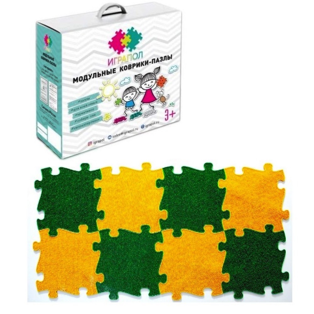Играпол. Модульные коврики-пазлы "Набор №16" (трава желтая+зеленая, 8 модулей)