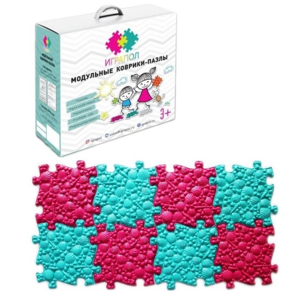 Играпол. Модульные коврики-пазлы "Набор №18" (ракушки бирюзовые и розовые, 8 модулей)