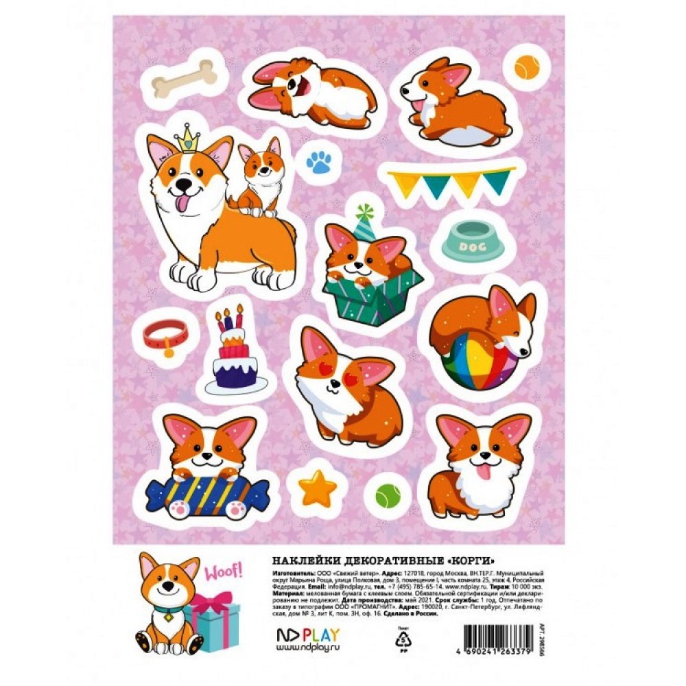 ND Play. Наклейки декоративные "Корги" арт.298566