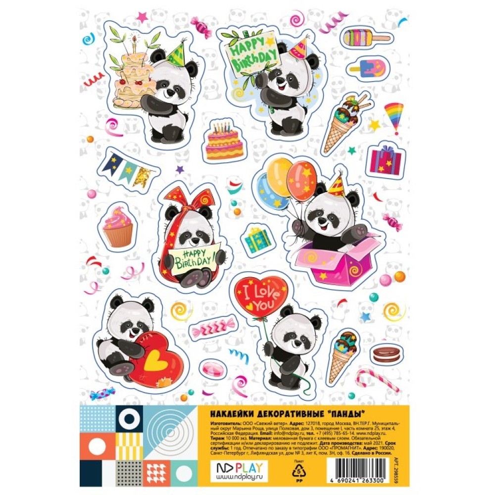 ND Play. Наклейки декоративные "Панды" арт.298559