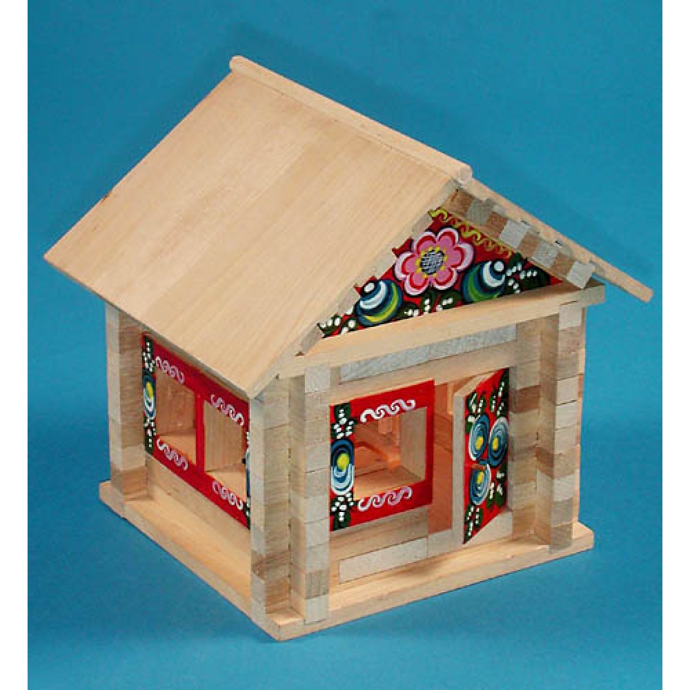 Пелси.Конструктор "Избушка-Теремок" с медведем, мебелью и светом не окраш. 106дет. арт.582кмэ