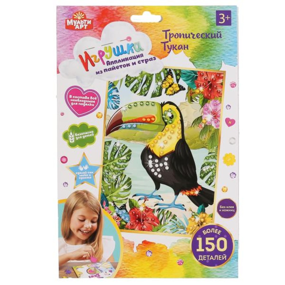 MultiArt. Аппликация из пайеток и страз "Тукан" 17х23 см, арт.261-MA-PS
