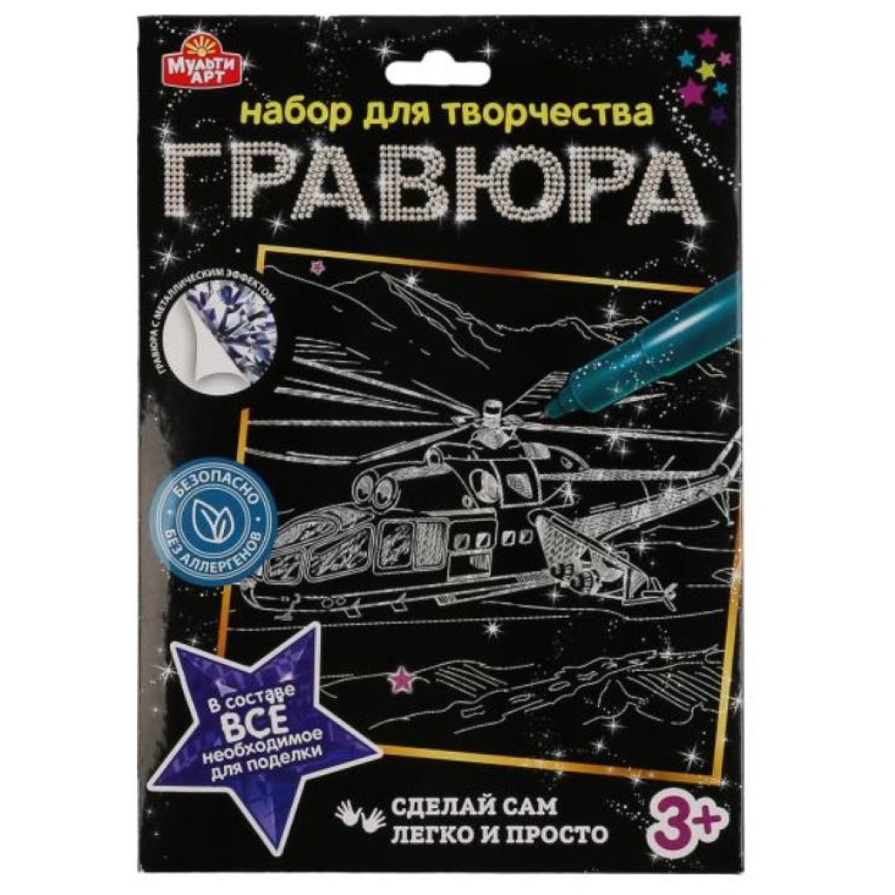 MultiArt. Гравюра "Вертолет" 18х24 см серебряная арт.100SCRATCHART-SILV-HELICOPTER