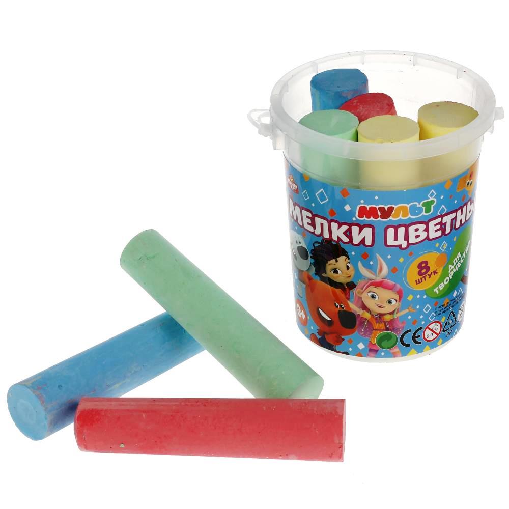 MultiArt. Мелки цветные "Мульт" асфальтовые 8 шт (4 цв) в ведре арт.MELBUCKET8-MULT