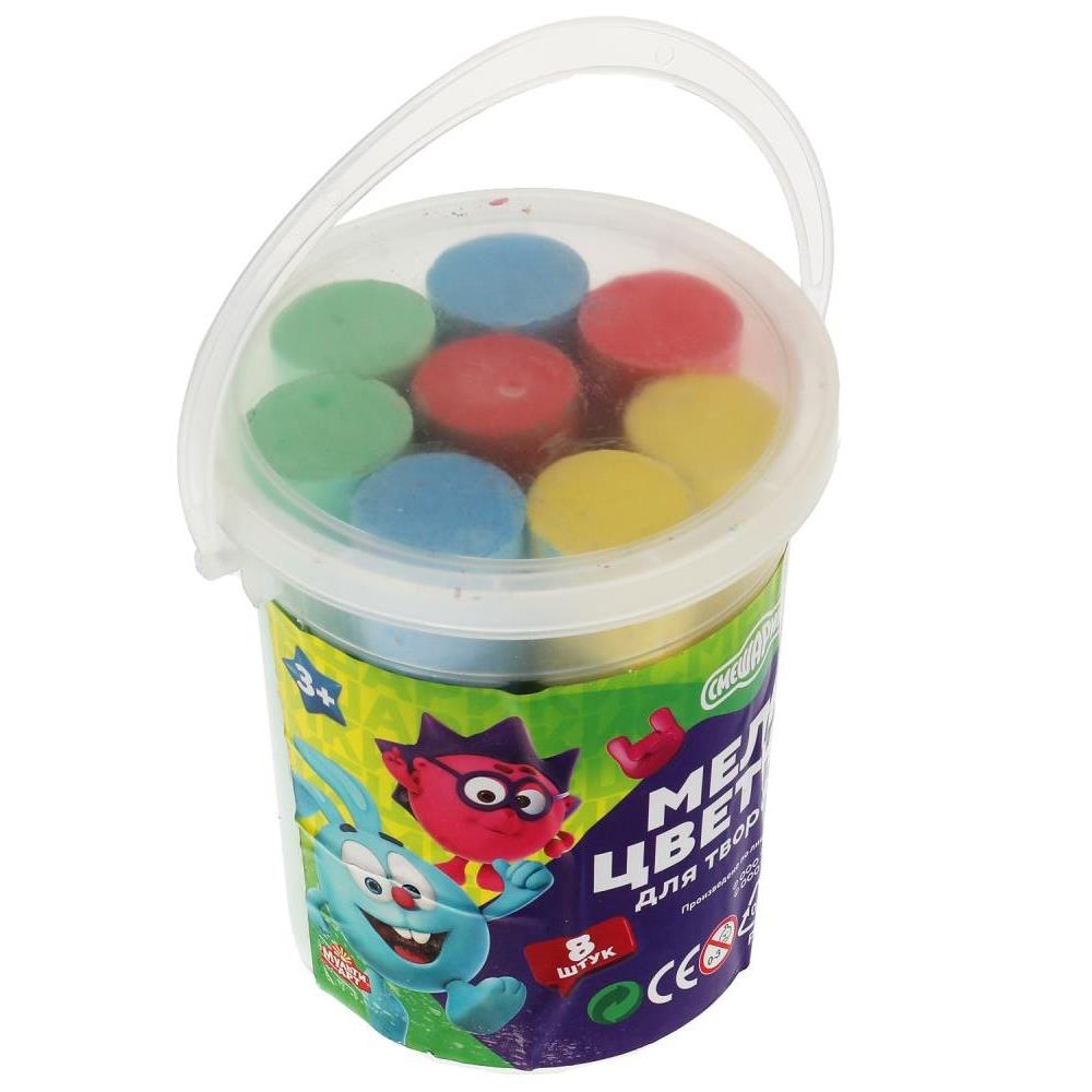 MultiArt. Мелки цветные "Смешарики" асфальтовые 8 шт (4 цв), в ведре арт.MELBUCKET8-SM