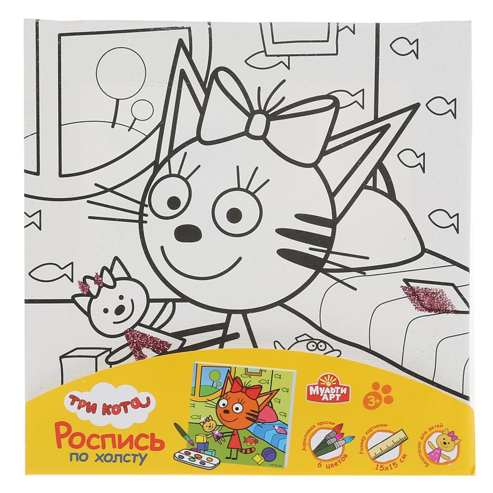 MultiArt. Набор под роспись "Три Кота. Карамелька" 15х15 см на холсте с глиттером арт.26733-TC