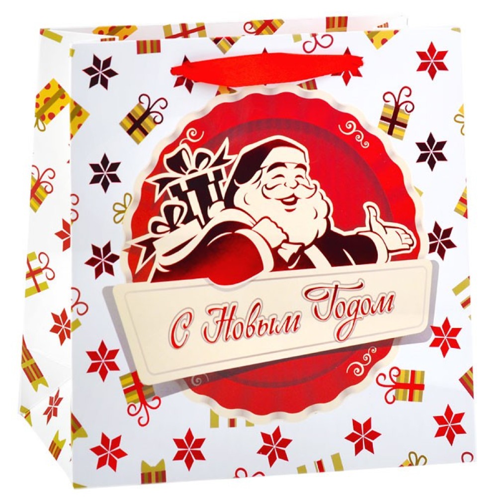 Пакет подарочный арт.90953 "С Новым годом" с фольгой 20х20х8 см
