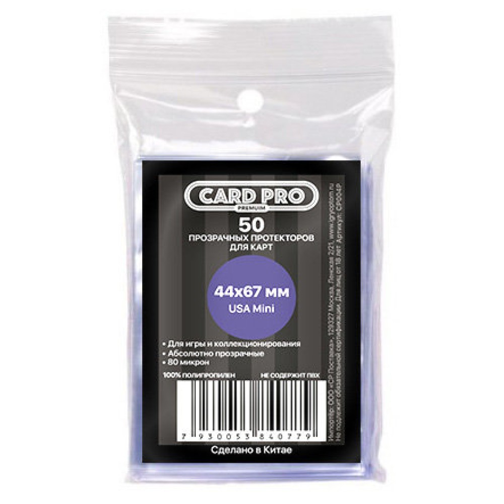 Протекторы Card-Pro для наст. игр 44*67 мм. (50 шт. 80 микрон) USA mini CP004P